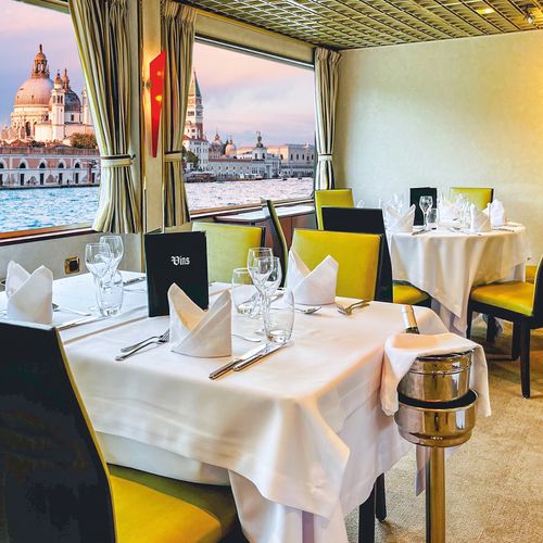 On aime... ♦ Bateau amarré au cœur de Venise à proximité de la place San Marco ♦ Navigation dans la lagune de Venise ♦ Murano, l’île des verriers ♦ Découverte gourmande des quartiers cachés de Venise ♦ Padoue, ville de Saint-Antoine ♦ Le palais des Doges, somptueux édifice à l’architecture unique ♦ Boissons incluses à bord (hors cartes spéciales aux repas et au bar et boissons lors des excursions)