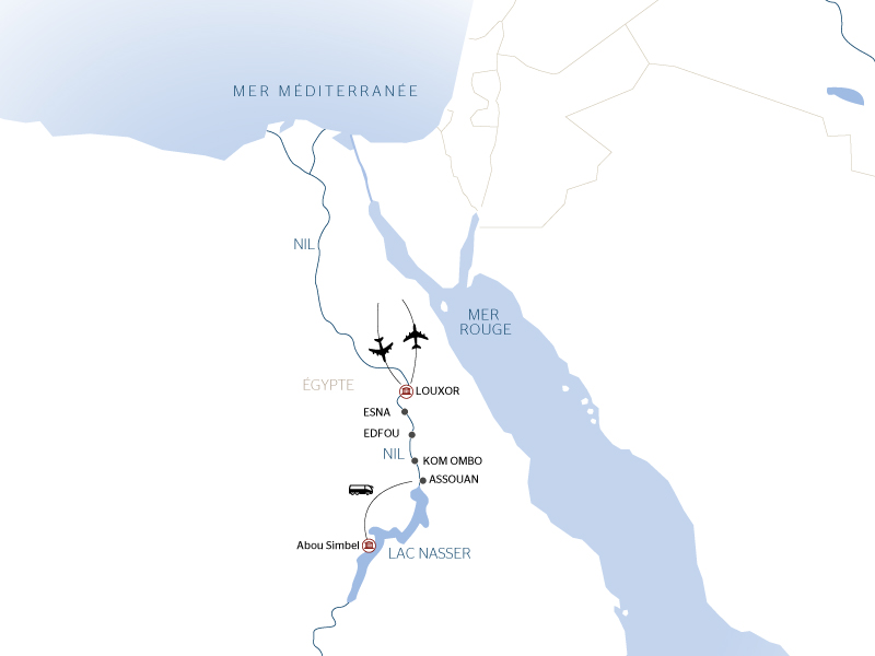 On aime... ♦ Visite des plus beaux sites de la Haute-Égypte : Karnak, Louxor, Edfou, Philae, Kom Ombo ♦ Promenade en bateaux locaux autour de l’île Éléphantine ♦ Découverte de la Vallée des Rois et 4 de ses majestueux tombeaux dont celui de Séti 1er ♦ Visite du temple de Philae, la Perle de l’Égypte. ♦ Bateau « Star of Luxor » avec cabines spacieuses (env 14.5 m2) ♦ Guides-égyptologues francophones de qualité soigneusement sélectionnés ♦ Boissons à tous les repas : 1 eau minérale + 1 soda ou 1 bière* ou 1 verre de vin* + 1 café ou 1 thé par personne